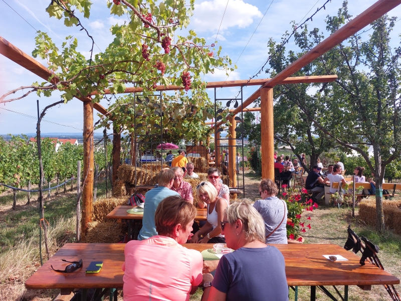 Gemütlicher Abschluss bei der Genussmeile. Ich empfehle Euch Taschenmesser, Gabel, Löffel, Mehlspeisgabel und Jausenbrettl mit zu nehmen. Zum Teilen mit anderen Wanderteilnehmer; um sich durch zu kosten. Je nach Lust und Laune können wir mit der Bahn von Thallern, Gumpoldskirchen oder Pfaffstätten nach Wien zurück fahren. Tourendaten: 410 Hm, 13,1 km Gehzeit: ca. 4 ¼ – 4 ¾ Stunden (Angaben ohne Pausen)